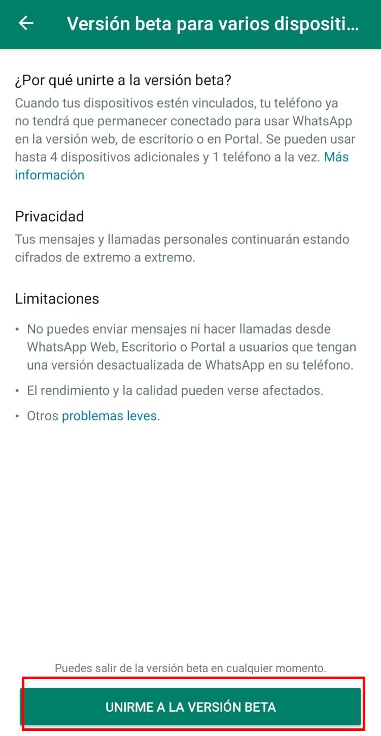Si bien la función de WhatsApp permite vincular hasta cuatro aparatos de manera simultánea, solo puede existir un teléfono conectado a la cuenta. Así, solo podrás vincularla en computadoras, lo que para la mayoría de los usuarios podría ser una decepción si esperaban tener la app en más de un celular.