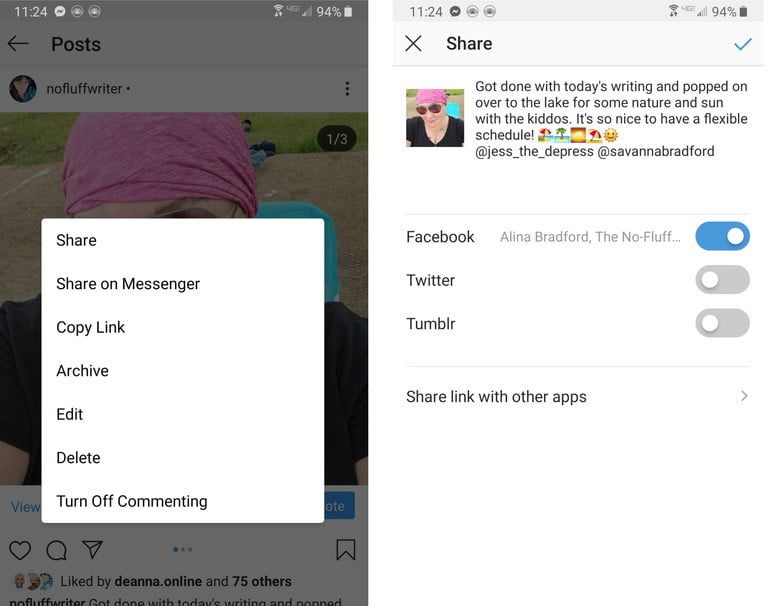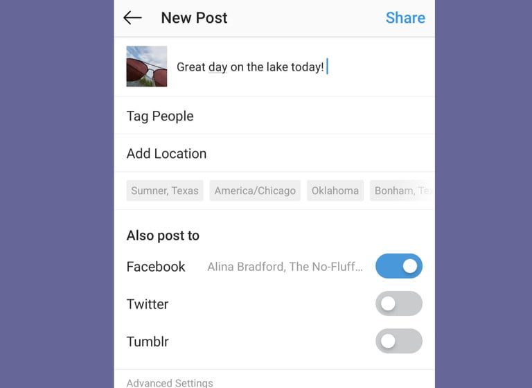 Además, debido a la perfecta integración entre las dos plataformas, los detalles de tu publicación de Instagram (incluidos los subtítulos), se compartirán en Facebook junto con los datos de ubicación, hashtags y emojis que hayas agregado.