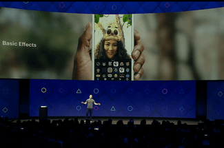Zuckerberg anunció una nueva plataforma de efectos de la cámara, que mejorará la nueva cámara que aparece en la aplicación de Facebook y en Facebook Messenger. Las mejoras y adiciones de cámara hasta el momento son solo el primer acto, y el segundo se tratará sobre la adición de efectos para construir una serie de experiencias de realidad aumentada.