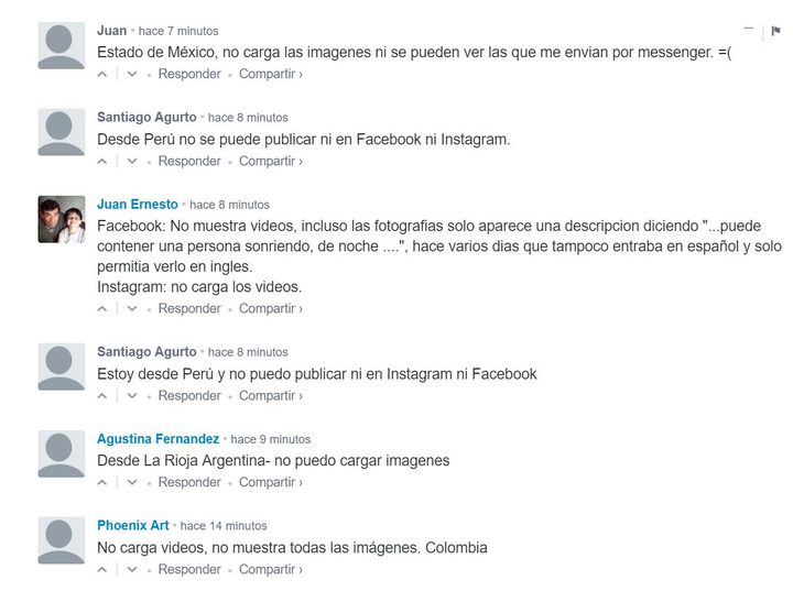 «Estamos conscientes de que algunas personas tienen problemas para cargar o enviar imágenes, videos y otros archivos en nuestras aplicaciones», se leyó en la cuenta que Facebook tiene en Twitter. «Lamentamos los problemas y estamos trabajando para que las cosas vuelvan a la normalidad lo más rápido posible», agregó.