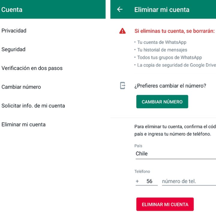 Debes considerar que esta acción es irreversible, por lo que no podrás registrar el mismo número de teléfono en el mismo celular ni recuperar los mensajes o la cuenta. También perderás la copia de seguridad en Google Drive.
