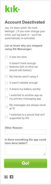 - Kik te enviará un correo electrónico con un enlace para desactivar permanentemente tu cuenta.