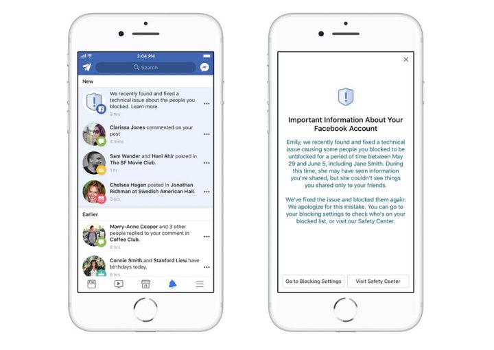 Según explica la empresa, el error estuvo activo entre el 29 de mayo y el 5 de junio, y, aunque las personas que fueron desbloqueadas no tuvieron acceso a ver el contenido compartido con amigos, podrían haber visto cosas publicadas con un público más amplio, por ejemplo, fotos compartidas con amigos de amigos.