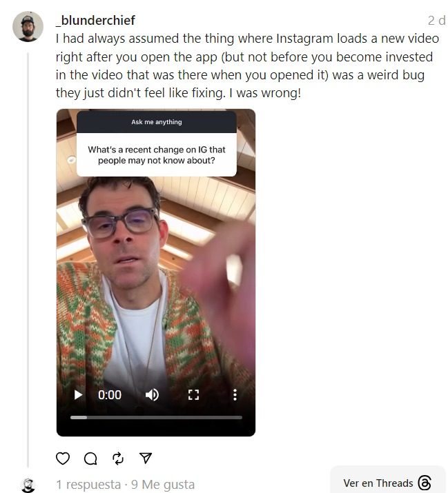 Adam Mosseri, el jefe de Instagram, dijoa principios de esta semana que el “rug pull”, como se le llama internamente a este proceso, fue diseñado intencionalmente “porque estábamos tratando de cargar contenido nuevo, y estaba tomando un tiempo, así que les mostramos algo que ya se había descargado mientras tanto, y generalmente es bueno para la participación”.