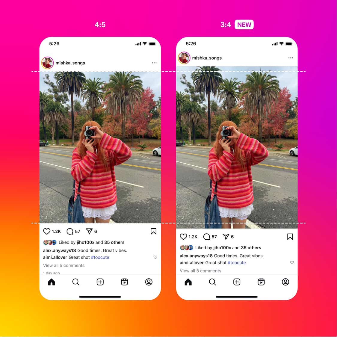 Instagram ahora admite fotos que tienen una relación de aspecto de 3:4, lo que significa que cuando subes una foto con esa proporción, «ahora aparecerá exactamente como la tomaste», dice el jefe de Instagram, Adam Mosseri, en una publicación de Threads. También señala que «casi todas las cámaras de los teléfonos tienen por defecto» ese formato.
