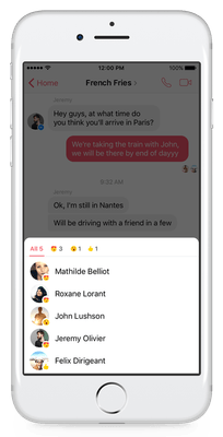 Estas nuevas herramientas en los mensajes permiten a los usuarios reaccionar ante una foto o texto de la misma manera en que pueden reaccionar en el feed de noticias. Al tocar y sostener el mensaje o la foto, aparecen los emoji de amor (corazón), sonrisa, wow, triste, y enojado, así como otras opciones similares, incluida la de aversión.