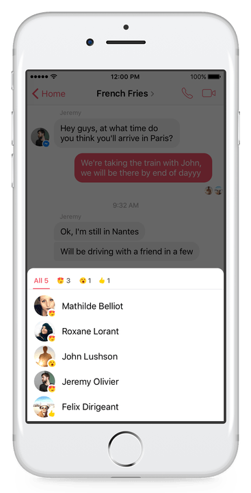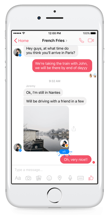 Estas nuevas herramientas en los mensajes permiten a los usuarios reaccionar ante una foto o texto de la misma manera en que pueden reaccionar en el feed de noticias. Al tocar y sostener el mensaje o la foto, aparecen los emoji de amor (corazón), sonrisa, wow, triste, y enojado, así como otras opciones similares, incluida la de aversión.