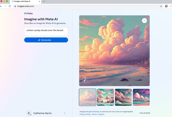 Al igual que DALL-E, Midjourney y Stable Diffusion de OpenAI, Imagine with Meta, que funciona con el modelo de generación de imágenes Emu existente de Meta, crea imágenes de alta resolución a partir de indicaciones de texto. Es de uso gratuito (al menos por ahora) para los usuarios en los EE. UU. y genera cuatro imágenes por mensaje.