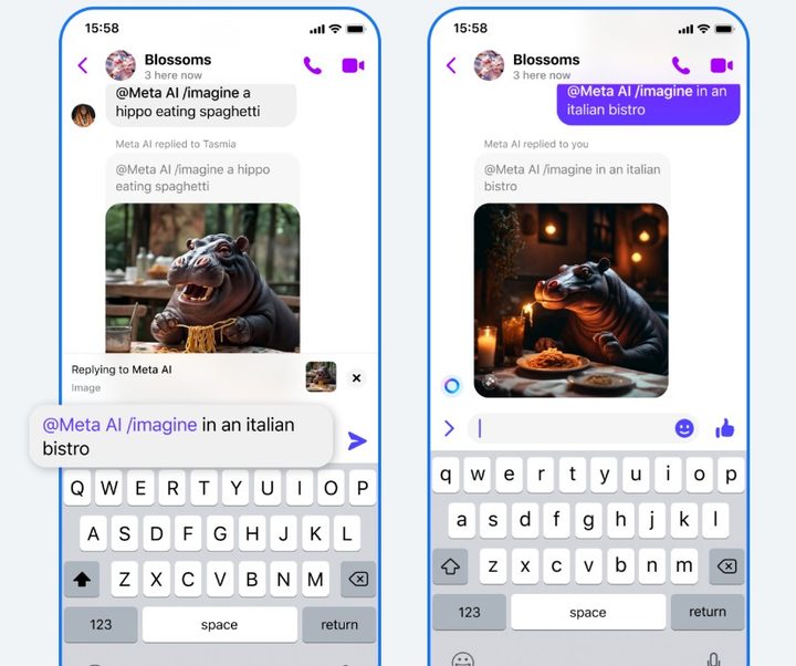 La primera, una función llamada “reimaginar”, permite a los usuarios en los chats grupales divertirse más recreando imágenes de IA con indicaciones, mientras que la segunda puede recurrir a Reels como recurso según sea necesario. Para usar reimagine en un chat grupal, un usuario primero generaría una imagen de IA con un mensaje utilizando Meta AI, el asistente virtual de la compañía que puede responder preguntas o generar imágenes. Un amigo podría mantener presionada la imagen para agregar otro mensaje de texto y Meta AI generará una imagen completamente nueva, basada en sus cambios. Luego, los amigos pueden ir y venir, recreando la imagen con múltiples indicaciones mientras intentan superarse mutuamente con ideas aún más salvajes, sugiere Meta.