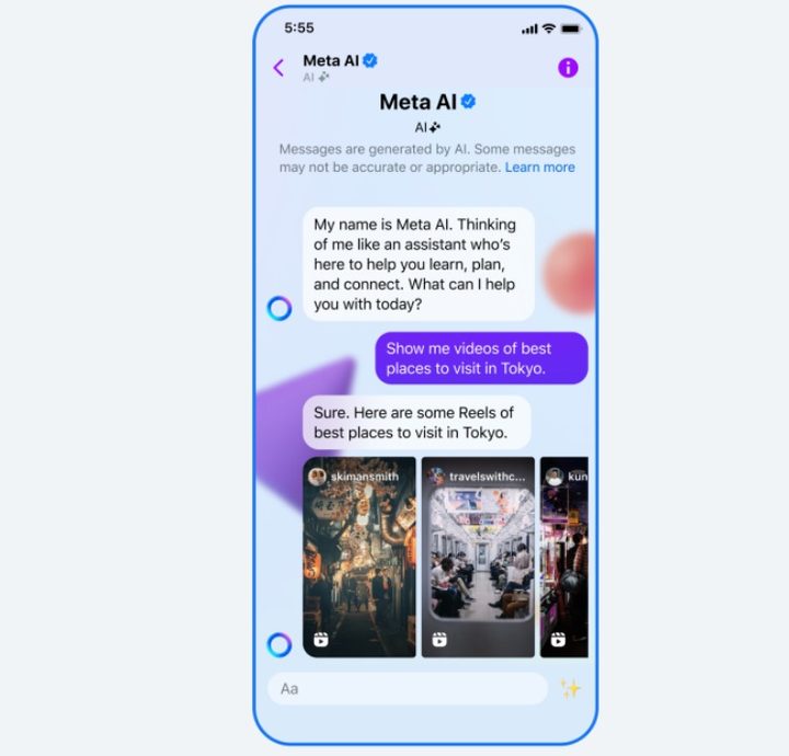 - Otra novedad es la compatibilidad con Reels en el chat de Meta AI. Esto podría ser útil cuando desee ver ejemplos visuales de cosas que coincidan con su consulta. Por ejemplo, si estuvieras planeando un viaje con amigos en un chat grupal, podrías pedirle a Meta AI que te recomiende los mejores lugares para visitar y compartir Reels de esos sitios y atracciones principales, explica la compañía.