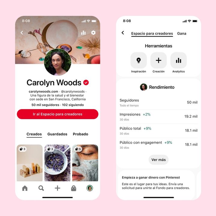 Por último, Pinterest anunció la creación de un fondo de 20 millones de dólares. Se trata de Creators Rewards, su primer programa de monetización de productos para creadores.