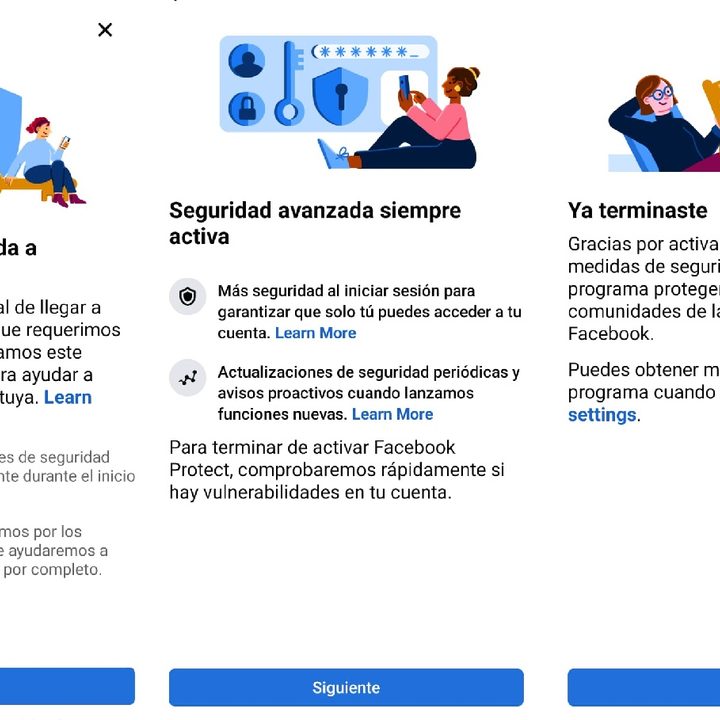 - En la pantalla donde se muestran los beneficios de Facebook Protect, haz clic en Siguiente.