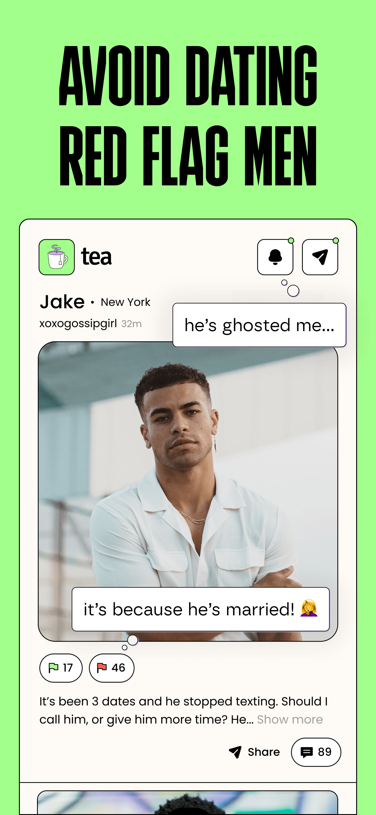 ¿Ya estás deslizando citas en Tinder, Bumble, Match o Hinge? Tea es una aplicación imprescindible, que ayuda a las mujeres a evitar las señales de alerta antes de la primera cita con consejos de citas y les muestra quién está realmente detrás del perfil de la persona con la que están saliendo.