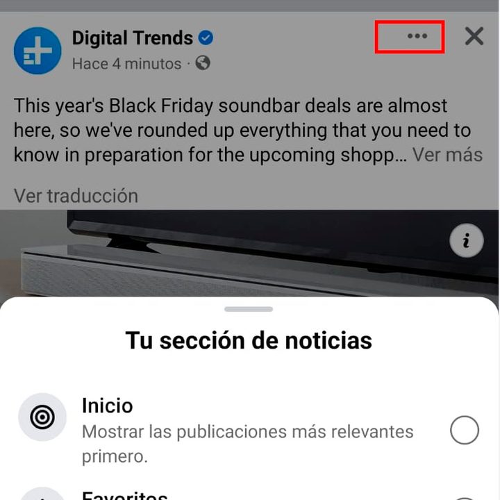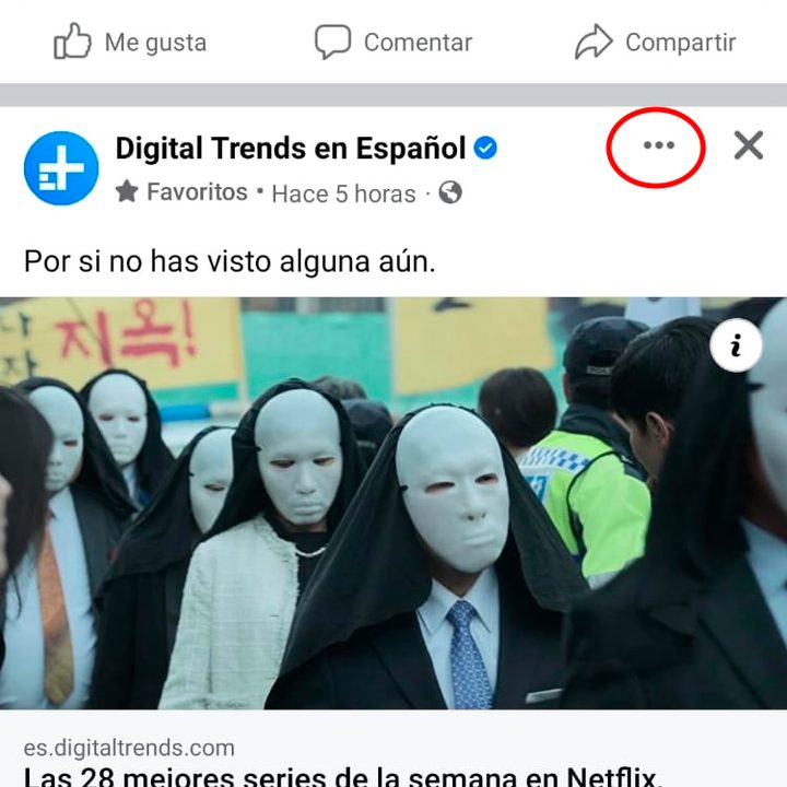 - Presiona los tres puntos suspensivos en la parte superior derecha de la publicación en la sección de noticias.