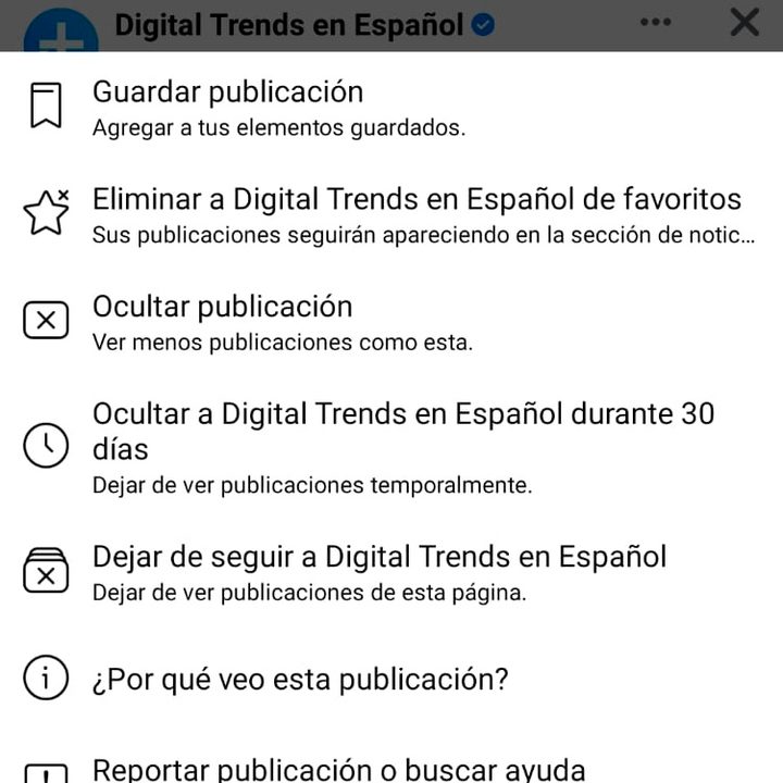 Desde un teléfono inteligente puedes hacerlo de la sección de noticias de forma individual. De esta forma, cuando veas una publicación que quieras ajustar, debes realizar los siguientes pasos: