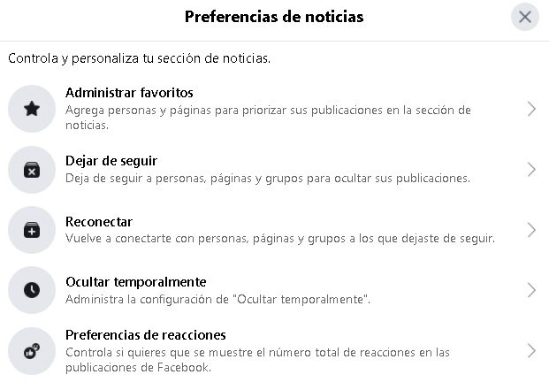 - Dejar de seguir: selecciona las personas o páginas cuyas publicaciones no quieres ver en tu sección de noticias.