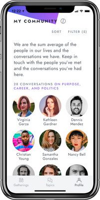- En cada reunión digital de 40 minutos de duración, te emparejan con cuatro socios para conversaciones profundas de 1 a 1 a través de video. Luego, establezca recordatorios para volver a ponerse en contacto y reunirse nuevamente en futuras reuniones.