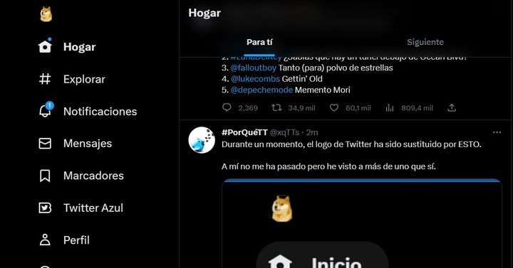 Este lunes 3 de abril los usuarios de Twitter comenzaron a notificar que el logo principal de la aplicación ya no es el pajarito, sino que en su lugar está apareciendo el perrito de Dogecoin.