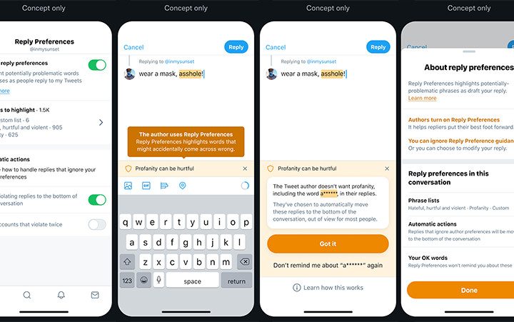 - Censurar frases: mediante un filtro especial se podrá limitar la aparición de respuestas en tu timeline con cualquier palabra que determines con anterioridad, por ejemplo, groserías o garabatos. Ahora, más que eliminar la palabra en cuestión, saldría una pequeña advertencia de que ese lenguaje podría dañar la sensibilidad de terceros.