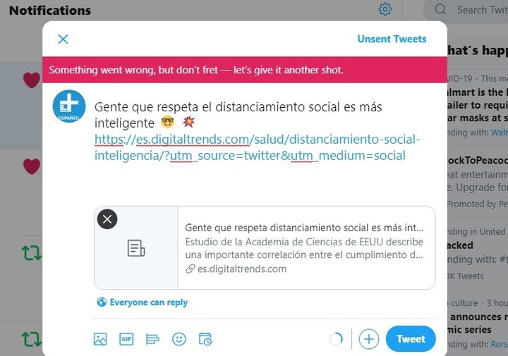 Un poco más tarde, a las 19:20 ET, la red social sacó un nuevo tuit para informar que seguían trabajando en el problema: