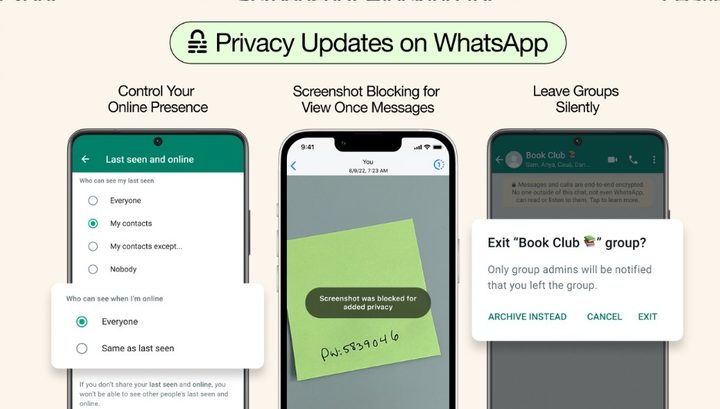 “Nuevas funciones de privacidad que llegan a WhatsApp: salga de los chats grupales sin notificar a todos, controle quién puede ver cuándo está en línea y evite que las capturas de pantalla se vean una vez que la saca a los mensajes. Seguiremos creando nuevas formas de proteger sus mensajes y mantenerlos tan privados y seguros como las conversaciones cara a cara”, sostuvo Zuckerberg.