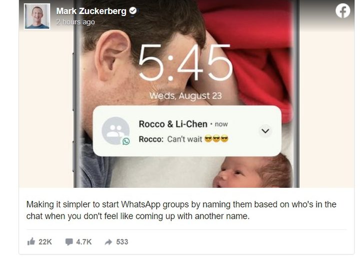 Una nueva característica para simplificar los grupos de WhatsApp anunció este miércoles 23 de agosto, Mark Zuckerberg. Se trata de una manera de crear grupos sin necesidad de darles un nombre y automáticamente se generará el título con los nombres de los participantes.