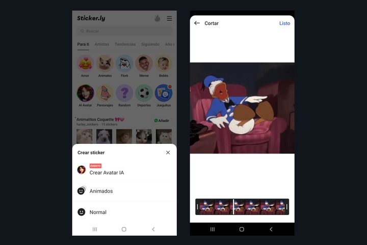 La mayoría de las aplicaciones de stickers de terceros te permiten convertir tus videos y archivos GIF en stickers animados, aunque algunas de estas aplicaciones sólo ofrecen esta función a los usuarios premium. Afortunadamente, la aplicación Sticker.ly te permite crearlos de forma gratuita.
