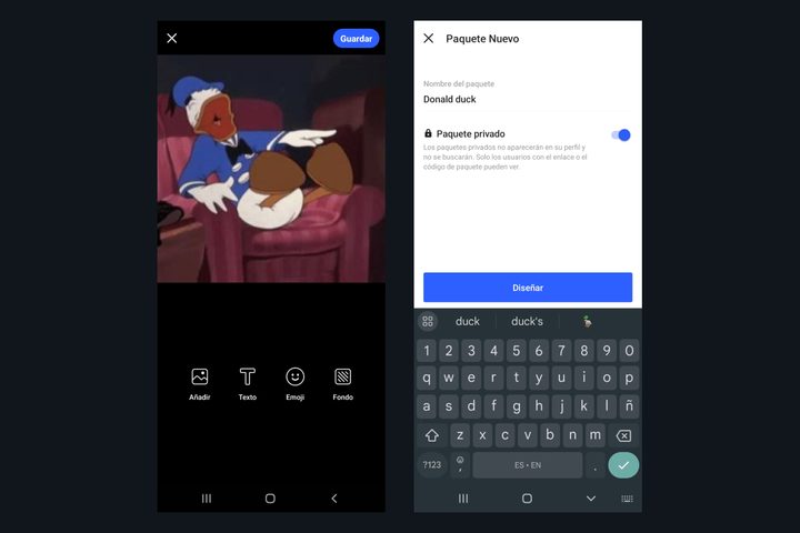 Paso 5: agrega texto y un contorno de color a tu sticker si lo deseas, y cuando consideres que está listo, toca Guardar.