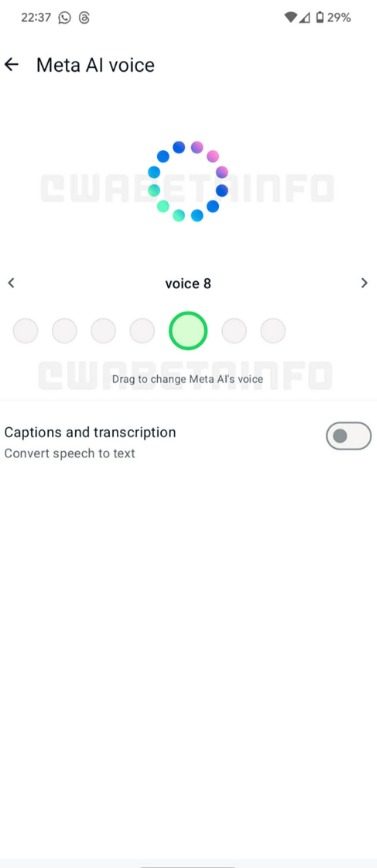 Como sugiere el término, la función permitirá a los usuarios elegir la voz de Meta AI. Uno puede seleccionar entre diez tonos de voz diferentes para el asistente virtual de la aplicación, lo que lo hace más interesante. Es probable que la función resida en el área Configuración de la aplicación.