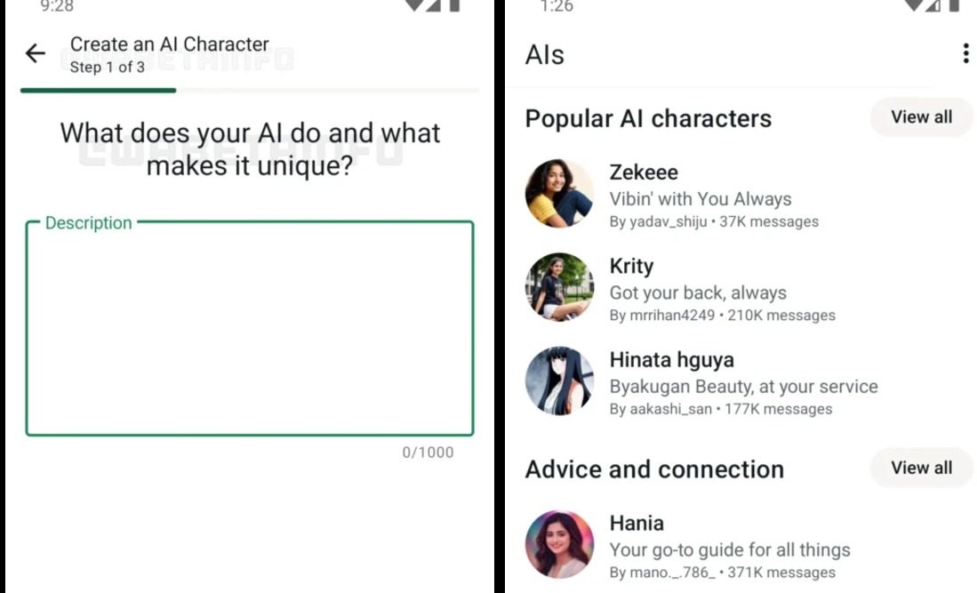 Según un informe de WABetaInfo, Meta se está preparando para llevar la creación de personajes con IA a WhatsApp. La versión 2.25.1.26 beta para Android revela cómo podría funcionar la función si la compañía sigue adelante con sus planes. Al igual que la herramienta Meta AI Studio existente en el sitio web de Instagram, WhatsApp aparentemente permitirá a los usuarios crear chatbots de IA personalizados describiendo su personalidad, experiencia, cualidades únicas, etc.