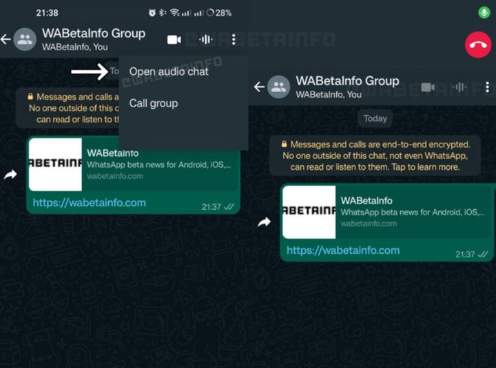 Según descubrieron en WaBetaInfo, la compañía trabaja en una nueva función que se añadirá a los grupos, llamada “Chat de audio”. Esto no es un reemplazo de las llamadas grupales, sino más bien otra alternativa, como se puede ver en las imágenes de esta versión de WhatsApp en desarrollo o “beta”.