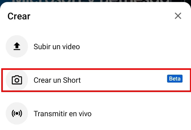 Para utilizar YouTube Shorts debes abrir la aplicación original de YouTube y presionar el botón Crear (+), ubicado en el centro del menú inferior. Entre las alternativas desplegables debería aparecer la opción Crear Short. Si no la visualizas, asegúrate de tener la última versión de la app.