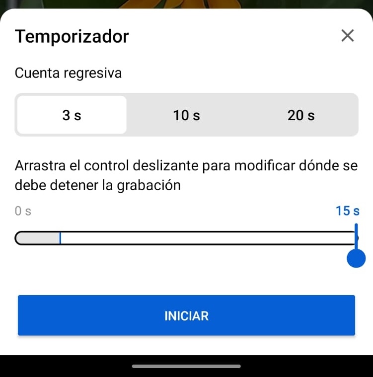 Otra herramienta útil es el Temporizador, que te permitir grabar sin usar tus manos, al definir una cuenta regresiva para iniciar el registro y la duración de la escena.