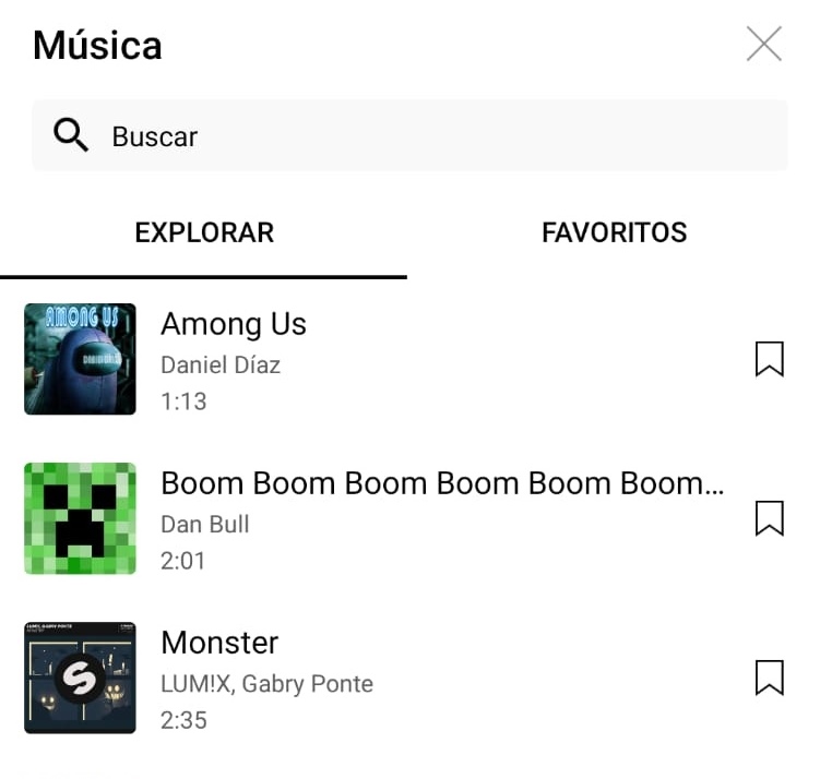 - La segunda opción es añadirlo después de grabar (tras presionar el ticket de verificación), en la opción Sonido ubicada en la parte inferior de la pantalla de edición.