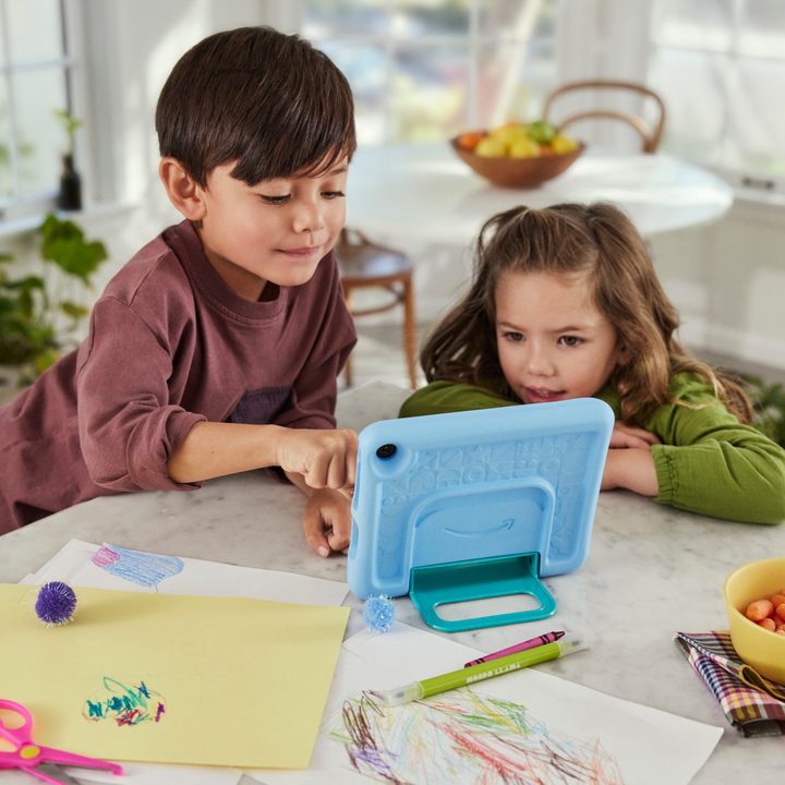 Puedes reservar la Fire 7 Kids hoy mismo a partir de $109.99 y, por primera vez, ofrece opciones de almacenamiento de 16 GB o 32 GB. El dispositivo viene con un diseño renovado de fundas a prueba de niños en azul, rojo y violeta, y cuenta con un soporte que también sirve de manija. Luego de un año, los clientes pueden extender su suscripción de Amazon Kids+ a partir de $2.99 por mes para los miembros de Prime. Los clientes pueden usar la misma suscripción de Amazon Kids+ en todos los dispositivos compatibles para acceder a aún más contenido apto para niños, incluidas las tablets Fire o dispositivos Fire TV, Kindle, Echo, iOS, Chromebook o Android.