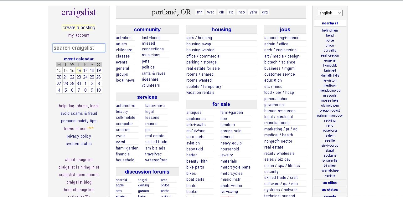 Con millones visitas mensuales, 10 millones de anuncios clasificados y 500 mil ofertas de empleo mensuales, Craiglist es el servicio número uno de avisos clasificados en Estados Unidos y, probablemente, en el mundo. Con un diseño que recuerda los primeros sitios web, puedes vender o comprar productos entre casi medio centenar de categorías, ofrecer servicios en más de 20 alternativas, buscar trabajo, arriendos o simplemente difundir cualquier tipo de actividad.