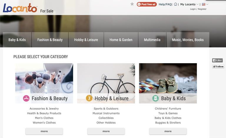 Locanto es básicamente Craigslist, pero con una interfaz mucho mejor. Las opciones de búsqueda son familiares para cualquiera que haya usado Craigslist, pero con menús, barras de búsqueda y botones que hacen que la experiencia sea más agradable. Puedes buscar por productos, estado, ciudad, hashtag, entre otras opciones. Además, tienes la posibilidad de configurar alertas de búsqueda para lo que realmente necesitas encontrar. Del mismo modo, la opción Publicar anuncio gratis es fácil e intuitiva, si quieres registrarte o vincularla con tu cuenta de Google. Tienes posibilidad de encontrar y vender de todo, desde trabajos y eventos personales. Desafortunadamente, no cuenta con aplicación para iOS o Android, aunque su versión móvil es atractiva.