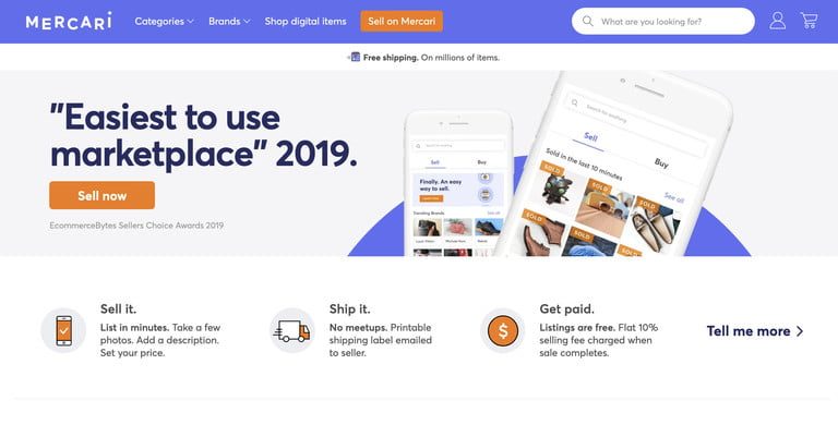 Si solo quieres comprar y vender productos, Mercari permite que concentres precisamente en eso. El diseño y las características de la aplicación y del sitio facilitan las cosas, gracias a un sistema de envío rápido que amplía enormemente la cantidad de personas a las que puede llegar. Aunque tiene una tarifa de 10 por ciento por la venta de cada producto, la función adicional hace que valga la pena. En el lado de las compras, es un gran lugar para encontrar tecnología usada barata, ropa con descuento y muchos otros artículos.