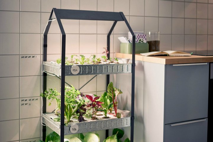 En mayo, Ikea anunció que vendería aparatos hidropónicos. Este sistema, La base de espuma garantiza que las matas reciban únicamente la cantidad necesario de agua y una vez las semillas crecen puedes ubicarlas en el contenedor. Puedes poner todos los contenedores en la bandeja de crecimiento, que viene con lámparas. Aún no llega a los Estados Unidos.