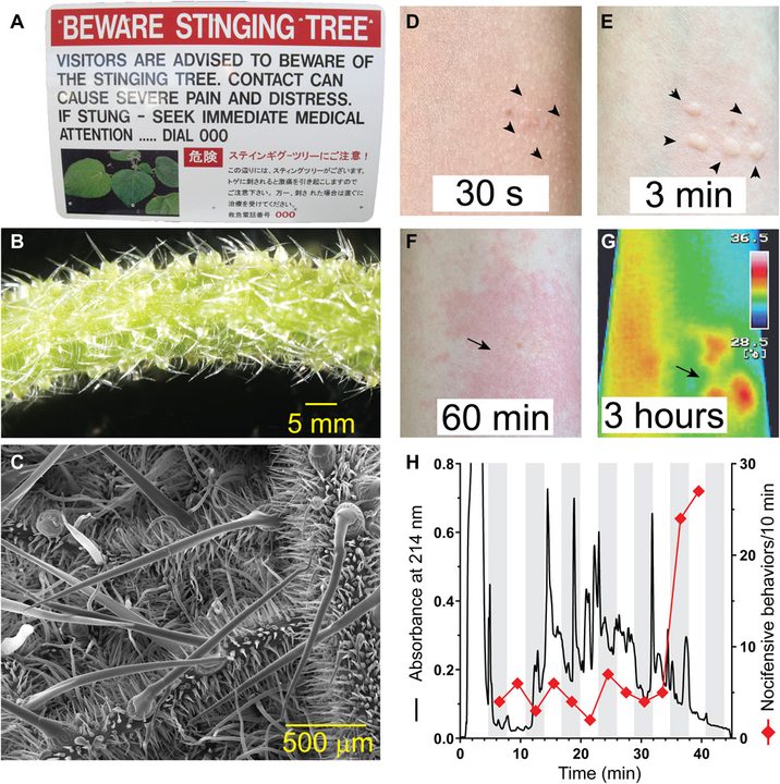 El estudio publicado en la revista Nature indica que, «el dolor implacable de la picadura de este árbol australiano es causado por péptidos recientemente identificados que se asemejan a los del veneno de araña».