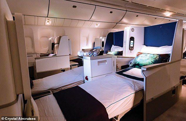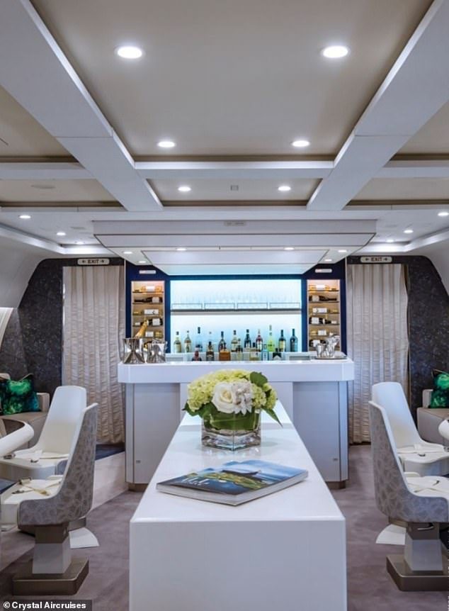 La aeronave, propiedad de la compañía Crystal AirCruises, es en realidad un Boeing 777-200LR adaptado para un uso propio de un príncipe. Atento a los datos: si en la configuración comercial este avión puede albergar hasta casi 400 pasajeros, el Crystal Skye da espacio a un máximo de 88 pasajeros (además de la tripulación), con lo que los afortunados viajeros tienen un generoso espacio para lo que les plazca.