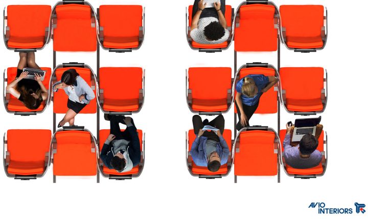 Avionteriors propone la creación de un diseño de carcasa envolvente en los asientos de pasajeros que se encuentren al medio de una fila de tres asientos, que mire hacia atrás, con doble S en formato de alojamiento de pasajeros (LOPA) y con la posibilidad de agregar una pantalla termoplástica transparente a nivel de la cabeza alrededor de cada usuario.