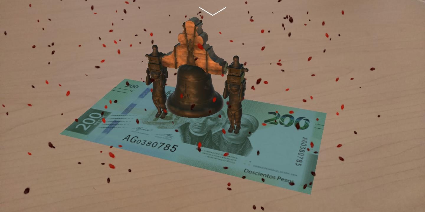 A través de la realidad aumentada, podemos ver y escuchar a la famosa Campana de Dolores, símbolo de la independencia por excelencia, sobre el billete de $200 pesos. Al reverso, en el lado dedicado a las reservas naturales, apreciamos el majestuoso vuelo de un águila real.