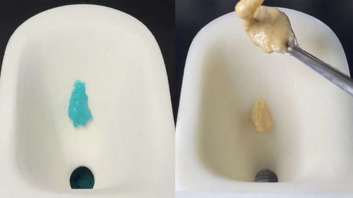 Usando una técnica llamada impresión 3D de sinterización selectiva por láser, el equipo fusionó granos de plástico y un tipo de arena hidrófoba para producir la cáscara sólida del inodoro. La sinterización es un proceso químico que compacta y combina dos tipos de sólidos sin fundirlos; Es importante destacar que esto crea una estructura porosa con muchos espacios diminutos entre las partículas sólidas. Los investigadores llenaron estos agujeros usando un aceite lubricante común que se extendió por toda la estructura para cubrir todo el inodoro.