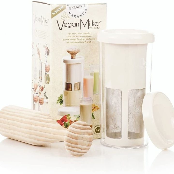 Es posible que a tu amigo o familiar vegano le parezca una excelente idea preparar su propia bebida de origen vegetal en casa. Para hacerlo, lo ideal es usar un Vegan Milker o lo que es lo mismo, un aparato de cocina con un filtro especial que te permite hacer todo tipo de leches vegetales caseras en pocos minutos. Uno de los más recomendados es el Vegan Milker Premium by Chufamix cuyo precio es de $53,95 dólares y que, además, incluye un recetario eléctronico.
