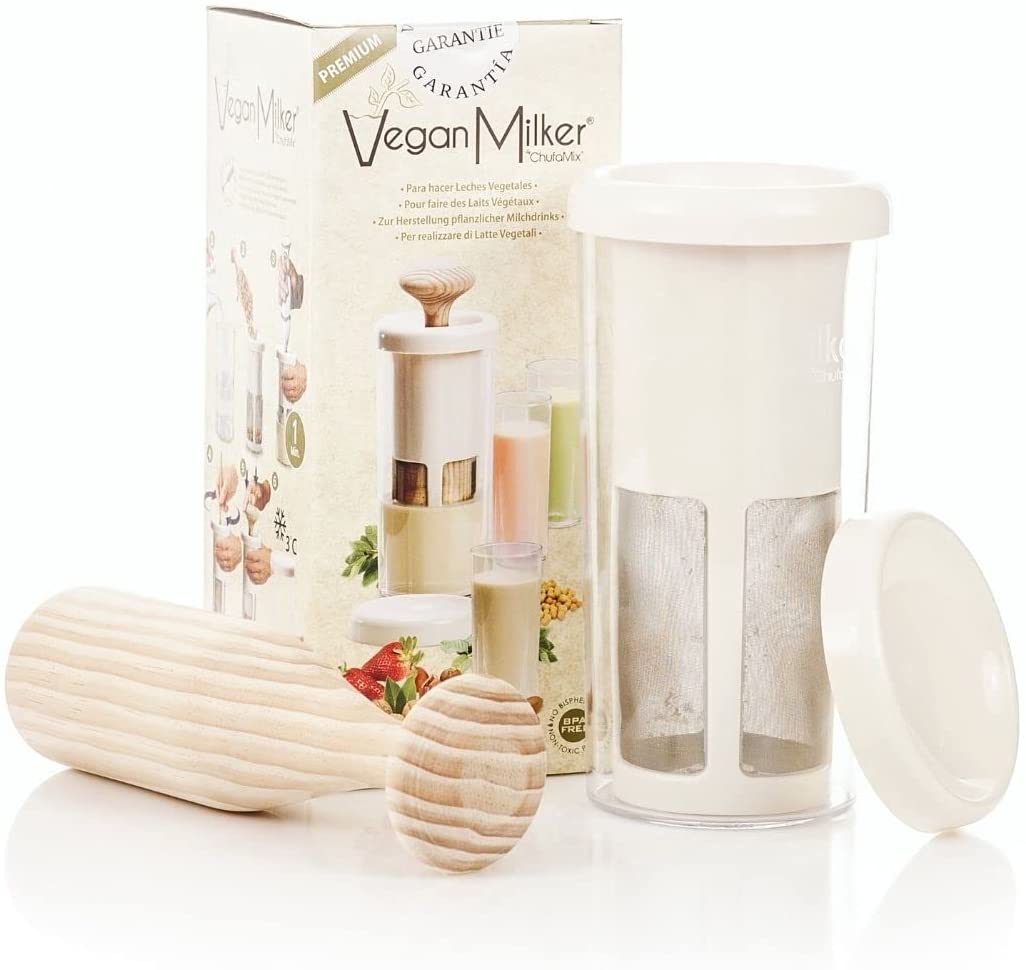 Es posible que a tu amigo o familiar vegano le parezca una excelente idea preparar su propia bebida de origen vegetal en casa. Para hacerlo, lo ideal es usar un Vegan Milker o lo que es lo mismo, un aparato de cocina con un filtro especial que te permite hacer todo tipo de leches vegetales caseras en pocos minutos. Uno de los más recomendados es el Vegan Milker Premium by Chufamix cuyo precio es de $53,95 dólares y que, además, incluye un recetario eléctronico.
