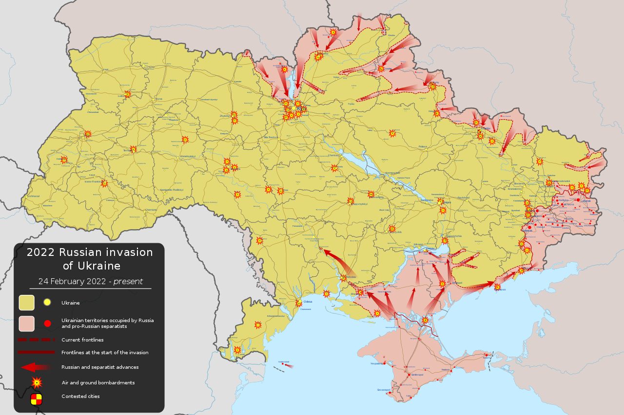 Aunque Wikipedia tiene la reputación de centrarse en el texto, los artículos sobre el conflicto en Ucrania tienen elementos visuales. De hecho, hay un mapa animado de la invasión y fotos de edificios de apartamentos que han sido alcanzados por misiles rusos.