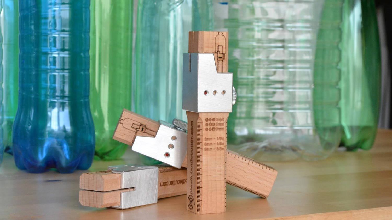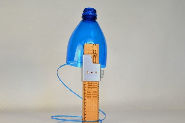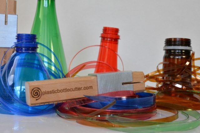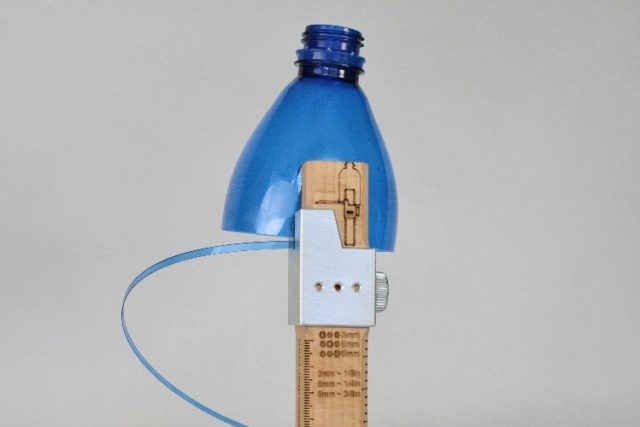 Bautizado como el “cortador de botella de plástico”, este simple artilugio, hecho de madera, con una hoja de afeitar y una guía de corte, puede convertir cualquier tipo de botella de plástico en una hebra larga y delgada que puede ser lo suficientemente flexible para utilizarse como una cuerda.
