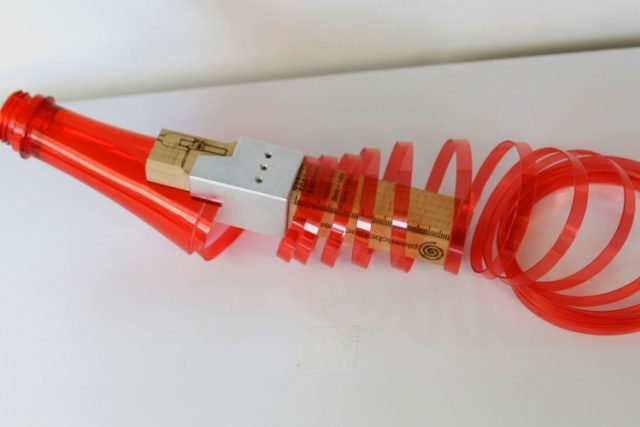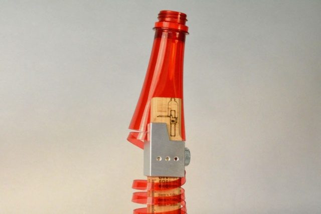 Eso sí, para poder usar este dispositivo, la parte inferior de la botella debe estar cortada. Después, se inserta la botella en la ranura y la herramienta corta el resto de la botella, convirtiéndola en una tira fina de plástico.