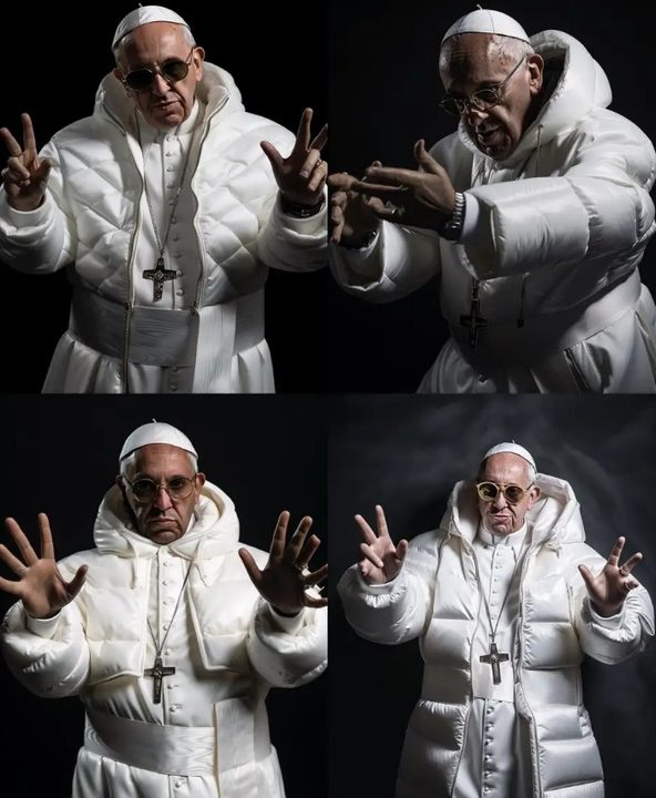 “El Papa con un abrigo inflado de Balenciaga o Moncler, caminando por las calles de Roma o París” fueron los prompts que probó.
